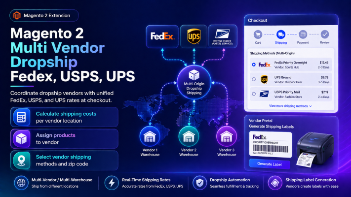 Magento 2 Multi Vendor Dropship Extension Fedex, USPS, UPS